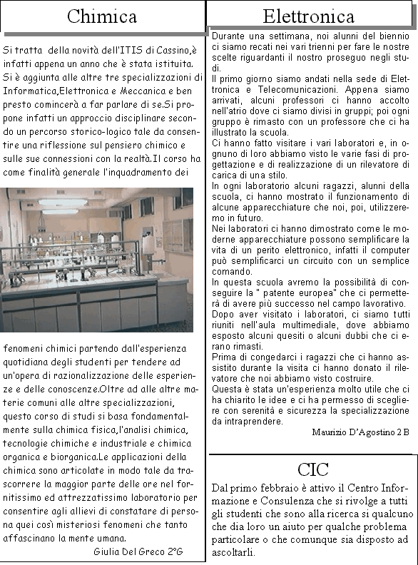 Meccanica : prof.ssa Gina Lucia Giovedì dalle 10,10 alle 11,10 Sede Centrale : prof.ssa Adenise Giannetti Giovedì dalle 10,10 alle 11,10 Biennio : prof.ssa Giovanna Imperato Martedì dalle 11,10 alle 12,10 prof.ssa Palma Falvo Mercoledì dalle 10,10 alle 11,10 Sarà inoltre possibile consultare la sociologa dott.ssa Loretta Di Vetta.